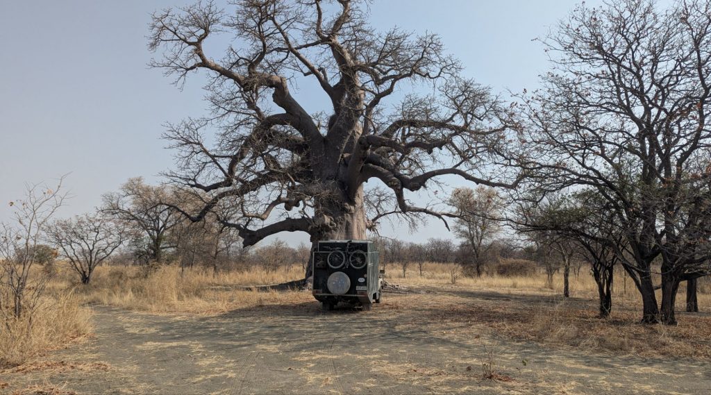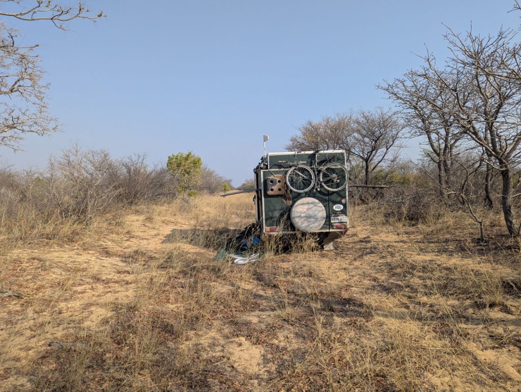 I turned south towards Makobelo, about 50km away. At Makobelo I stopped at the small supermarket looking for something to boost my supplies, but there really wasn’t much. I then turned south again towards Mmashoro. It was about 70km, along what Tracks4Africa said was just a track, but actually was a pretty good road. I stopped for lunch part way along under a track that ran under some powerlines. I pulled out onto the bitumen A14 at Mmashoro. About 30km down the road I was going to stay in a wild camp that I had found in 2019, and stayed twice. I had added it to iOverlander, and a few people had used it since. The road going in however had got more overgrown, lots of bashing the sides of the camper.