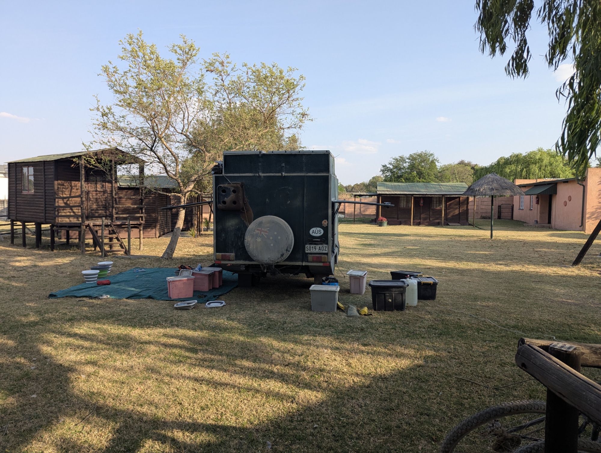 I continue on towards Palapye. I wander around a couple of shopping centres. Palapye is so big now, not the dusty town I visited for the first time ten years ago. I decide I am going to head to Segaigai which is a reserve and campground maybe 5km out of town. There is a campground in town, but the couple of times I have visited it, it has gradually gone downhill. Its good to stay in Palapye as its about 120km run to Martins Drift border crossing, and then its about 230km to Weesgerus caravan park which is not expensive (unlike anything in Bela Bela) and is a reasonable under 200km run to Benoni. So I whatsapp Segaigai, but I don’t get an immediate answer. So I decide I will head out there anyway. However on the way I get a message saying its OK for me to camp, and I tell them I will be there in 15 minutes, but it takes me much longer because I get lost. I get caught blindly following the GPS again getting stuck on roads that are not passable. After about 40 minutes of driving around I finally get there. Its a nice campsite, and after a little while James who is a New Zealander and runs the place introduces himself. He has been there about five years.